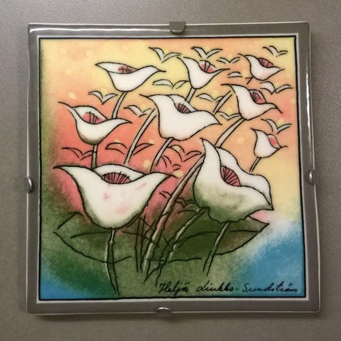 Heljä Liukko-Sundströmin Arabialle suunnittelema Syksy seinälautanen. Halkaisija 11,5cm.