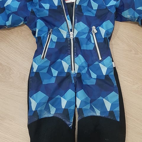 Reiman talvihaalari koko 110. Polvissa ja pepussa kulumaa, mutta ehjät vielä. Jalkalenksut kiinni ja ehjät. Käden heijastin kulunut.
