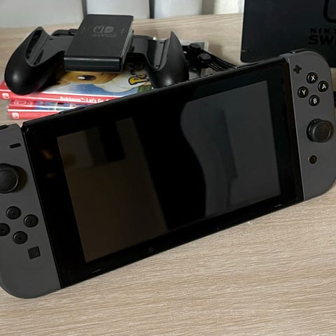 Myynnissä käytetty Nintendo Switch pelikonsoli. Itse pelikonsoli on täysin ehjä, mutta vasemmanpuoleisen Joy-Con-ohjaimen sauva on viottunut. Sauvan suunnat toimivat, mutta alaspäin painallus ei toimi. Ohjaimen saa korjattua tai vaihdettua toimivaan. Mukaan saa halutessaan viallisen Nintendo Pro Controller ohjain. Myöskin tämän ohjaimen vasen sauva on viottunut, alaspäin suuntaus jää usein päälle.