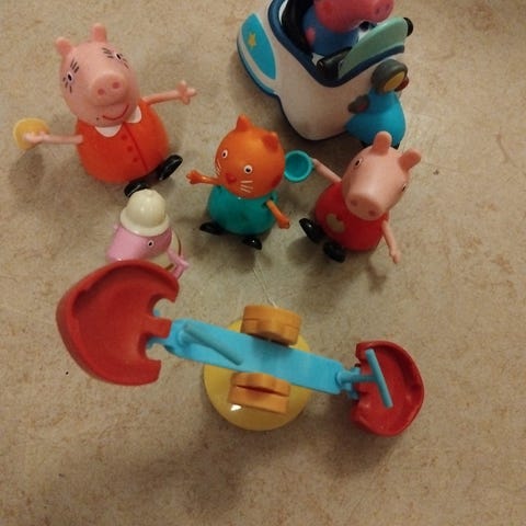 Peppa Pig lelusetti sisältää useita hahmoja ja erilaisia leikkipaikan osia, kuten liukumäen, keinun ja muita pienoisesineitä. Soveltuu lasten leikkeihin ja roolipeleihin.