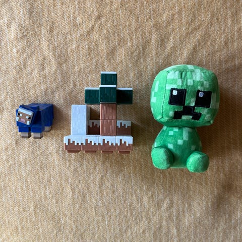 Minecraft Creeper figuuri, vihreä, valmistettu muovista. Sisältää Creeper-hahmon ja pieni lisäosa. Sopii kokoelmiin ja leikkeihin.