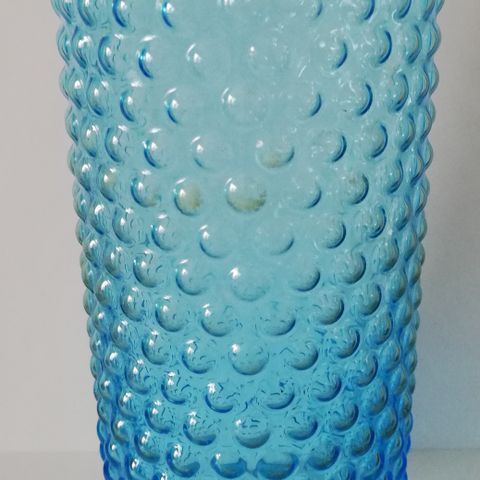 Tämä on turkoosi Nuutajärven Näppylä-kulho, jonka Saara Hopea suunnitteli vuonna 1952.