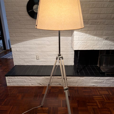 Hieno Design valaisin, jossa myös led lukuvalo. Runko kromi,korkeus 160cm . Ovh 239€.