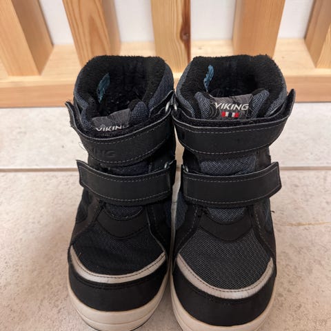 Viking lasten kengät, koko 32, musta väri, unisex-malli. Kengät on valmistettu kestävistä materiaaleista ja niissä on tarrakiinnitys. Sopivat lasten käyttöön erilaisissa sääolosuhteissa.
