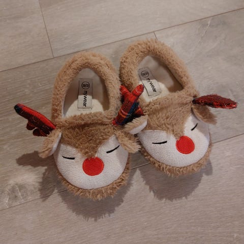 Myydään hauskat Poro-aamutossut, koko 36/37, uudenveroiset (paristi viime jouluna käytetty).