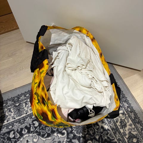 Paljon käytettyjä mutta edelleen käyttökelpoisia vaatteita.
