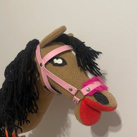 Keppari on hyvä kuntonen ja ei ole reikiä. Silmät ovat tekonahkaa ja sieraimet. Tekiästä ei ole tietoa! Olen itse vaihtanu harjan joka ei lähde tai ole ainakaan lähteny minulla kun oli kovassa käytössä. Turvassa on myös pieni merkki ja silmissä pienet valopilkut. Toivottavasti tämä ihana hevonen pääsisi hyvään kotiin. Keppi tulee mukaan.