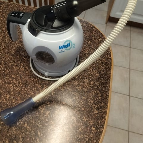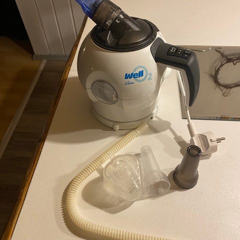 Well 2 Oxy Breathing Steam Hengityslaite on varustettu höyrytoiminnolla ja säädettävillä asetuksilla. Laite on valkoinen ja siinä on musta ja sininen suukappale. Mukana tulee lisävarusteita ja käyttöohjeet. Laite toimii verkkovirralla ja on suunniteltu hengityksen vahvistamiseen. Sopii hyvin astmaatikoille,sekä urheilijoille hengityksen vahvistamiseen.Jäi käyttämättä henkilön muutettua.