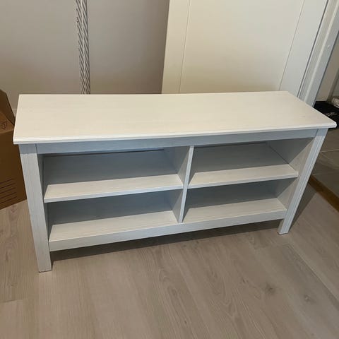 Täältä torista aikoinaan ostettu. Kiviprintillä teipattu, olettaisin IKEAn tv-taso etsii nyt uutta omistajaa. Pääty on jokseenkin huonosti teipattu kuten kuvasta näkee mutta itse korjasin tilanteen laittamalla siihen kasvin eteen.