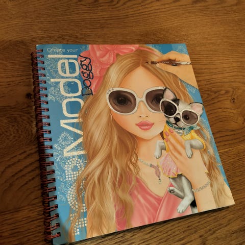 Top Model lasten koiraleikkikirja, jossa on erilaisia koriste- ja asustetarroja leikkiin. Kirjassa on useita sivuja, joihin voi kiinnittää tarroja ja luoda erilaisia kuvia ja asukokonaisuuksia. Kaksi erilaista, 5€/kpl.