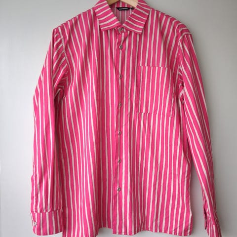 Joka poika Jokapoika Marimekko miesten naisten unisex kauluspaita raitapaita klassikko klassinen puuvillapaita kesäpaita uudempi onesize oversize S M L jokapoikapaita pinkki meloni aprikoosi koralli persikka vaaleanpunainen