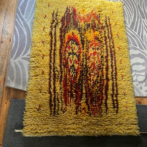 Hyväkuntoinen retro ryijy etsii uutta kotia. Ei hajuja ja kangas ehjä. Koko 107x165 cm. Tankoa ei ole mukana.