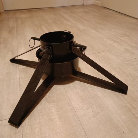 Myydään valurautainen joulukuusenjalka. Tukeva, uudet ruuvit. Pientä käytönjälkeä.