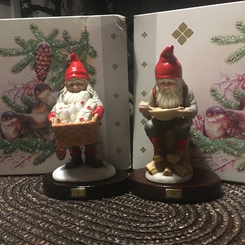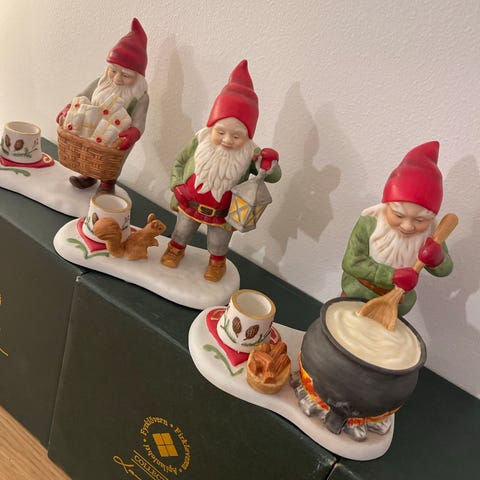 Upeat ja harvinaiset Apilanlehden Tonttu-kynttilänjalat alkuperäispakkauksissaan.