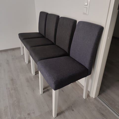 Muuten ok kuntoiset tuolit, ”nahka” revennyt jokaisesta ja vaatii uutta verhoilua
