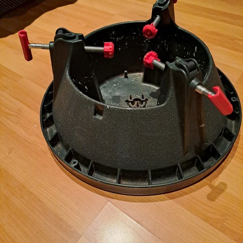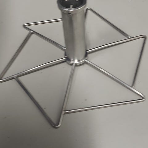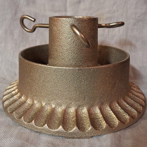 Painava pyöreä kuusenjalka, koristeellinen. Silmämitalla koko 20 X 30 X 30 cm, putken tila ehkä 10 cm.