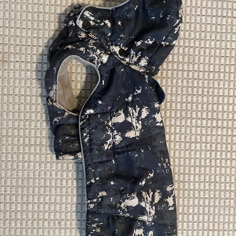 RUKKA talvitakki. Talvimantteli. Koiralle tai kissalle. Koko 30 cm. Kaikki ehjää. Heijastimet sivuilla. Valjaille oma läpivienti. Jalkaremmit ehjät. Kunto hyvä.