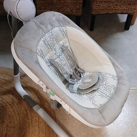 Sitterin jalat saa säädettyä pysymään paikallaan tai keinuteltavaan asentoon.