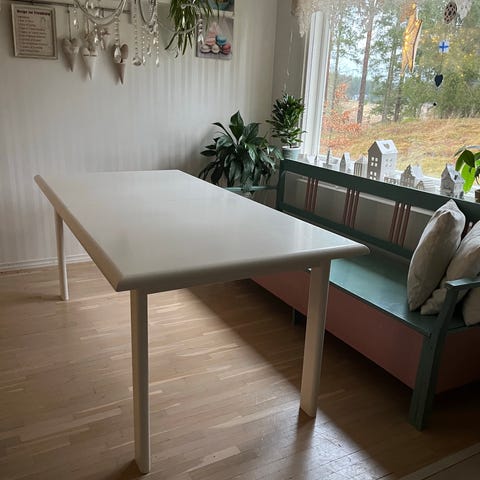 220cm ruokapöydän ympärille mahtuu mukavasti 6-8 ruokailijaa, mutta jos istuinpaikkoja tarvittaisiin silti lisää niin pöytään on tilattavissa erikseen lisä klaffit vaikka pöydän molempiin päihin jolloin kokonaismittaa tulee huikeat 320cm. Näin pöydän ympärille mahtuu jopa 12 ruokailijaa.