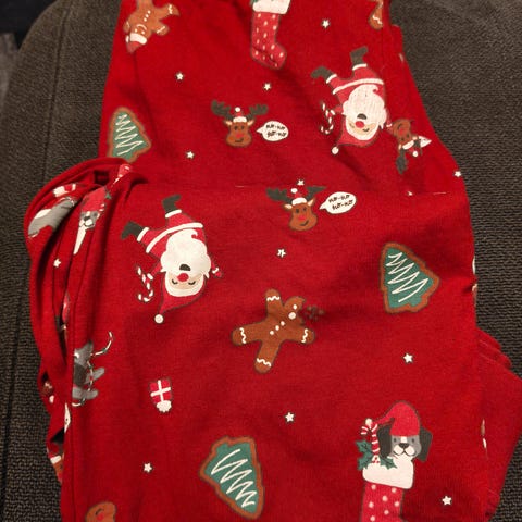 Myydään jouluinen yöpuku-/oloasusetti koossa 122-128cm.