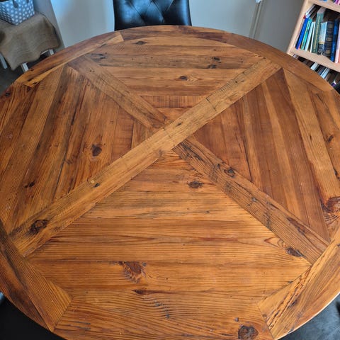 Myydään muuton alta massiivipuinen pyöreä ruokailuryhmä 6:lla kangastuolilla. Jykevät ruokailla ja istua. Vähäisellä käytöllä olleet ja hyvä kuntoiset. Hinta ei kiveen hakattu