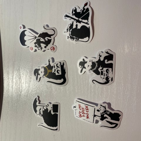 Myös muita Banksy tarroja myynnissä. Katsothan muutkin ilmoitukseni.