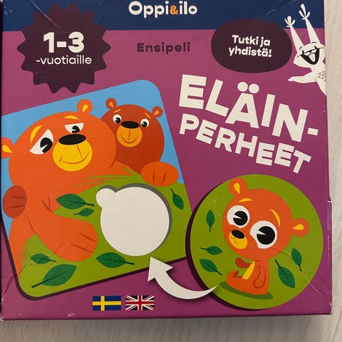 Oppi ja ilo eläinperheet aktivointipeli. Kaikki palat tallella. Laatikon kulmissa kulumaa.