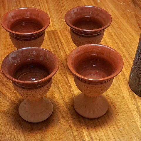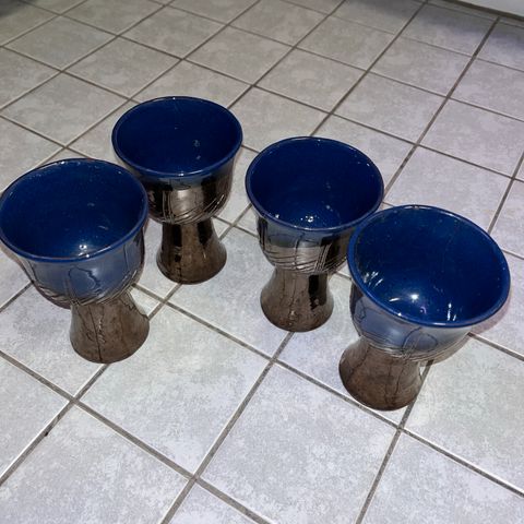 Keraamiset pikarit 4kpl. Toisin päin käännettynä ovat kynttilanjalat. Virheettömät.