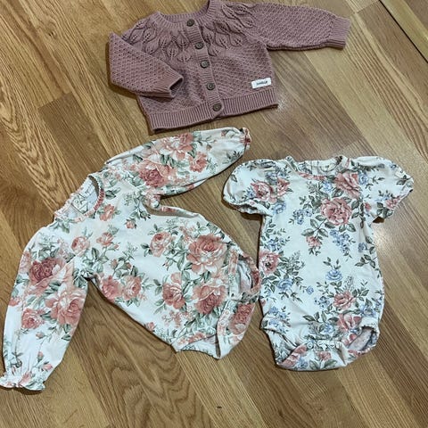 Meidän poitsu taisi käyttää näitä kaikkia vielä kokoa isompana eli ollesaaan 62 ja 68. Vaatesetti käy mielestäni myös tytöille. Pesty 60 asteessa hajusteettomalla Erisan baby pyykinpesunesteellä ja Erisan baby pyykkietikalla.