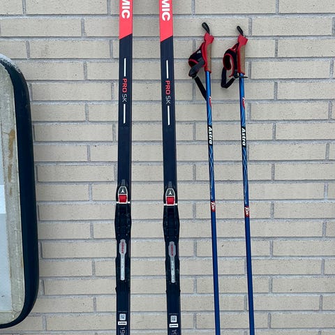 Pohjassa jonkun verran naarmua, mutta varmasti toimii hyvin vapaantyylin hiihdon opetteluun.