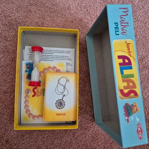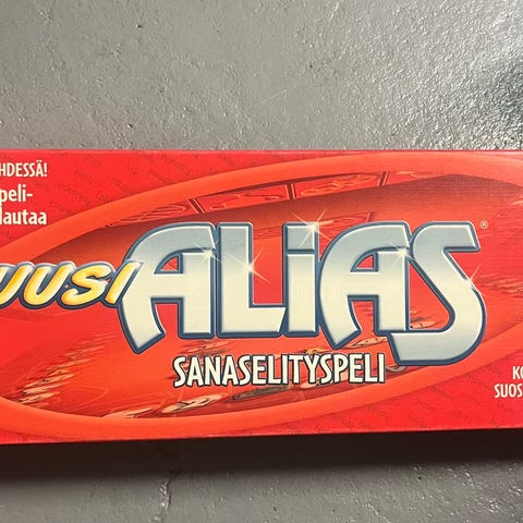 Myynnissä alias sananselityspeli, sisältää kaiken mitä kuuluukin. Kaksi peliä yhdessä, 4800sanaa ja 2 pelilautaa.