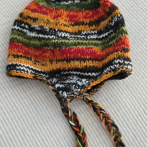 Hand made in Lapland. Käsinkudottu neulepipo. Itse ommeltu trikoovuori osassa pipoa. Lasten koko.