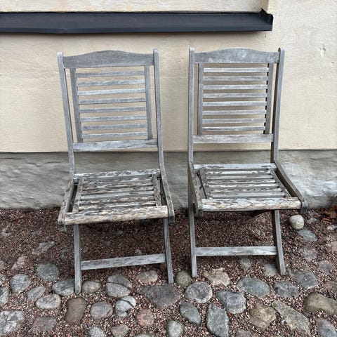 Kaksi mustaa ulkotilaan soveltuvaa tuolia. Tuolit sopivat puutarha- tai pihakalusteiksi.