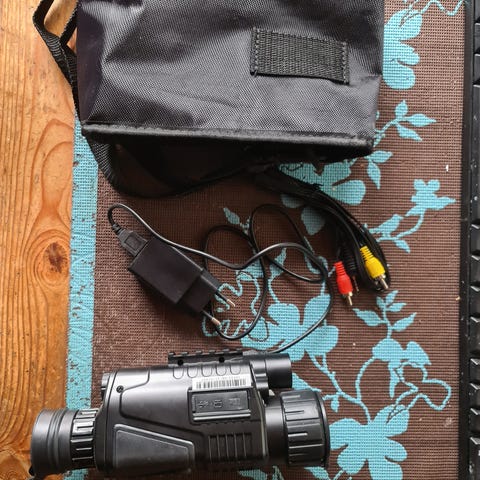 Myydään UUSI Helmet mounted Night Vision pimeänäkö monokulaari. Paketti avattu ja testattu että toimii. Tilattu kiinasta ja youtubessa ihan kehuttu vehje. Ei ole mikään muovilelu vaan ihan metallinen laadukkaan tuntuinen monokulaari. Näkee aivan sysipimeässä joten voi kulkea luonnossa ilman valoa kenenkään huomaamatta. Olikohan vielä niin, että tässä mallissa on tuo infrapuna inframusta eli pimeässä ollessa kiikaria ei voi havaita. Kiikarissa on bluetooth joten voi yhdistää langattomasti laitteen vaikka puhelimeen ja videon tallennus onnistuu myös. Mukaan tulee pääpanta ja metallikiinnike jolla kiikari pysyy "silmällä" joten kädet jää vapaaksi. Kiikarin saa myös kiinnitettyä kypärään jos kypärässä oikeanlainen kiinnike. Ohjekirja ja laatikko tulee mukaan joten sopii antaa vaikkapa lahjaksi.