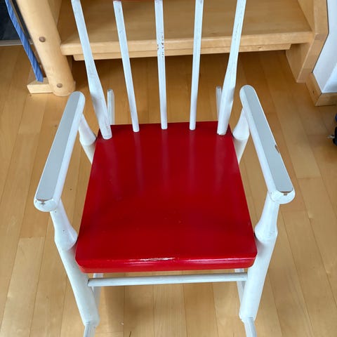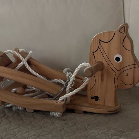 Myydään puinen vauvan keinu 1950-luvulta. Kangas osa on uusittu.