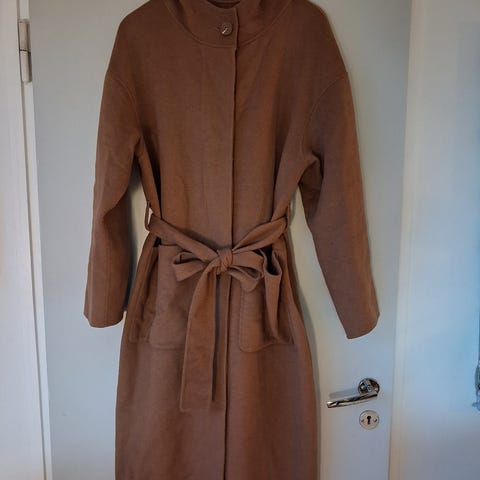 Nanso Hilka ihana kamelin värinen hupullinen pitkä takki villakangasta. 50% villaa