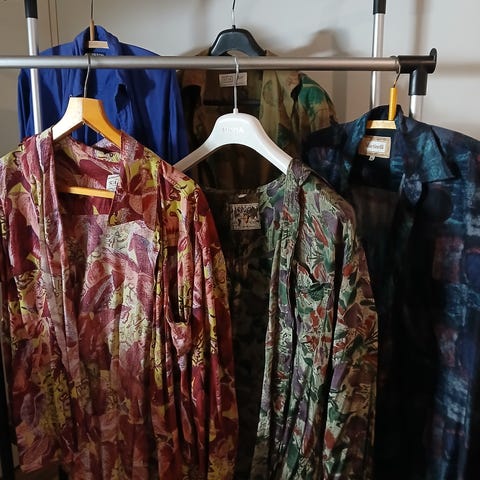 Kuva 4: Kirjava punainen silkkipaita ja kirjava sininen Uomo Di Mondo