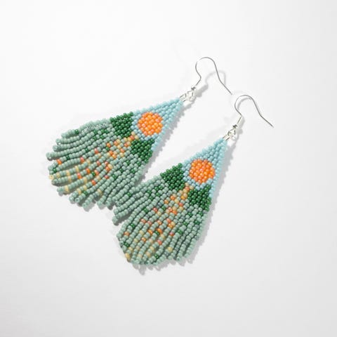 Käsinkudotut hapsulliset korvakorut on tehty pienistä Miyuki-lasihelmistä keltaisen, ruskean ja oranssin sävyissä. Kevyet ja näyttävät korvakorut – boheemi ja tyylikäs yhdistelmä.
