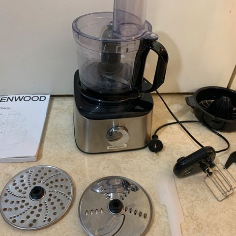 Kenwood Yleiskone Monitoimikone sisältää kulhon ja erilaiset lisäosat, kuten vispilän ja taikinakoukun. Laite on suunniteltu monipuoliseen ruoanlaittoon ja leivontaan.