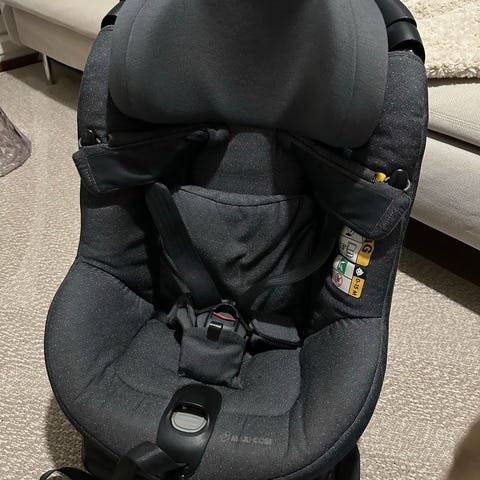 Muutaman vuoden vanha, uutena lastentarvikeliikkeestä ostettu Maxi-Cosin Stone turvaistuin (499) kuitti löyty. Istuin kääntyy molempiin suuntiin ja 360 astetta ja lapsi on helppo laittaa istumaan tuoliin käännettävyyden ansiosta. Sisältää Isofix-osan. Kolaroimaton ja muutenkin siisti.