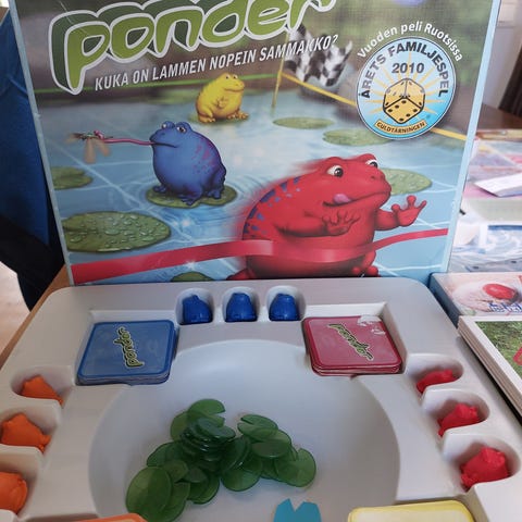 Lystikkäät sammakot peli ja siistissä kunnossa ja kaikki osat tallessa ja yhteen korttiin lapsi numeroinu . Kannessa pientä jälkeä. 10e nouto Kivenlahti mobilepay tai käteinen tasaraha