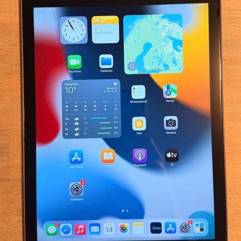 Apple iPad Air2 tabletti, jossa 16 GB tallennustilaa. Siisti ja ehjä. Käyttöjärjestelmän versio 15.8.4. Paikka SIM-kortille (Cellular). Sormenjälkilukija. Hintaan sisältyy uusi latausjohto. Myös akku asiallisessa kunnossa. Tehdasasetukset palautettu.
