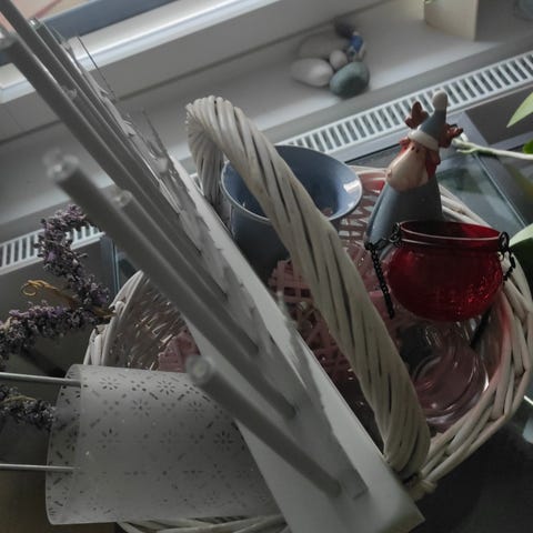 Sisustuskoreja, oksia ja kaksi tyynyliinaa