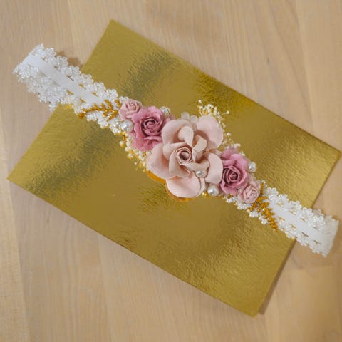 Käyttämätön vaaleanpunainen / rosan värinen kukkapanta vauvalle. Ostettu Baby Tuttifrutista