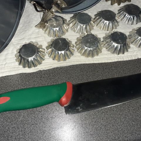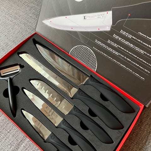 Käyttämätön upea Lord Nelson Santoku kokkiveitsi metallilaatikossa.