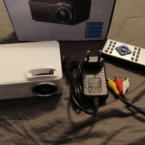 Aiptek V5R kannettava käsi videoprojektori tai mikä lienee. Kuvaa pätkä ja heijasta se vaikka seinälle. Voi olla pieniä käytön jälkiä mutta toimii kuten pitääkin. Akku latautuu ja äänet kuuluu. Mukaan tulee alkuperäinen kuljetuskotelo jonka saa vaikka vyölle roikkumaan. Tässä kiva leikkikalu seuraavalle...