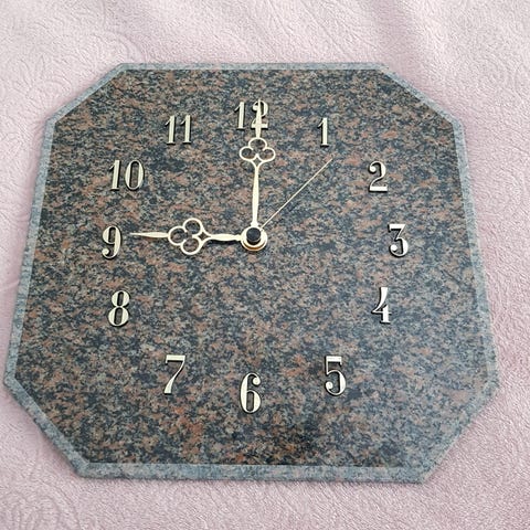 Käsityönä tehty kivikello, kourakello Reisenshnautzer (koko 31 x 15,5 x 1,5 cm). Tavallinen AA-paristo kestää pitkään.