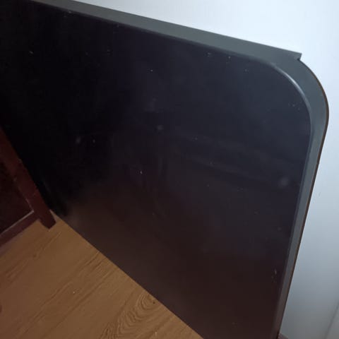 Pöydän jalkoihin pitää itse hankkia ruuvit, ne ovat muutossa kadonneet.
