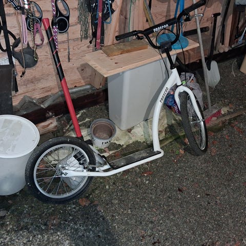 Hyväkuntoinen Esla potkupyörä. Hyvää tukea myös talviulkoiluun. Säilytetty varastossa ja katoksessa.