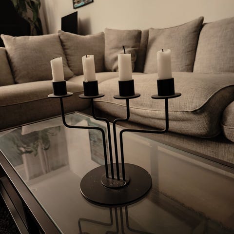 Kynttelikkö neljälle kynttilälle. Nouto Kumpulasta.
